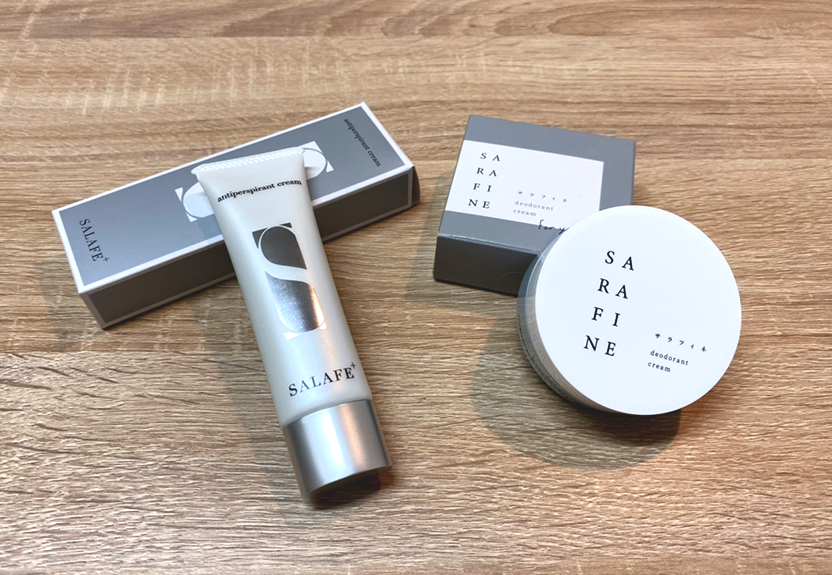 - 制汗剤には肌への刺激が強く体専用の物がほとんどですが、サラフェプラスは顔にも使用できる『日本初の制汗剤』なんです。