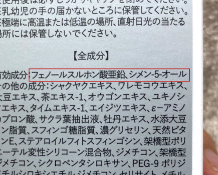 サラフェプラスの制汗成分はフェノールスルホン酸亜鉛。他にシメン-5-オール(整肌成分)も配合されています。